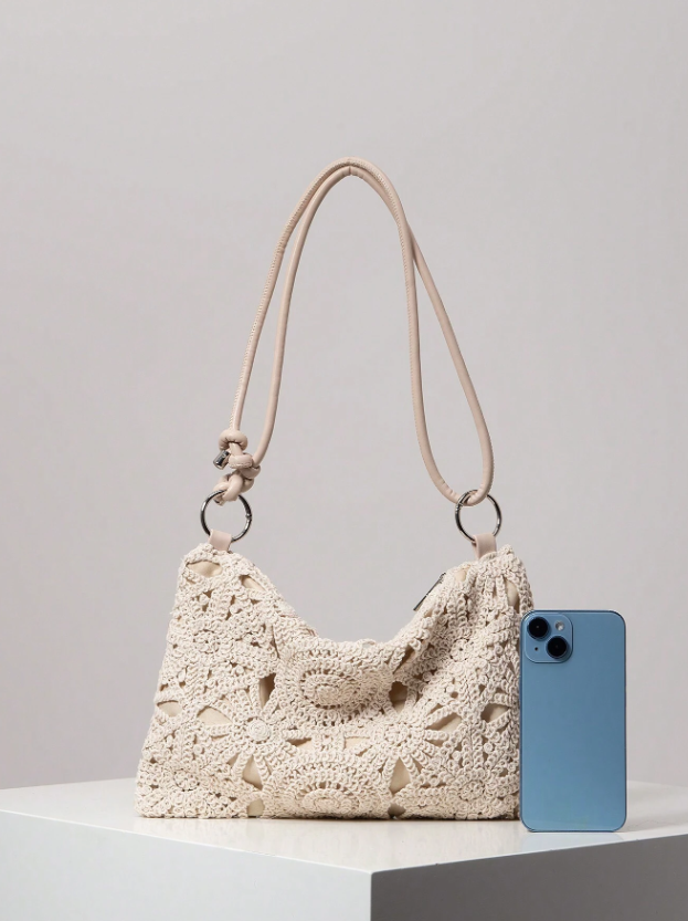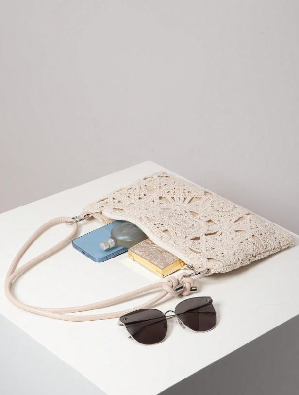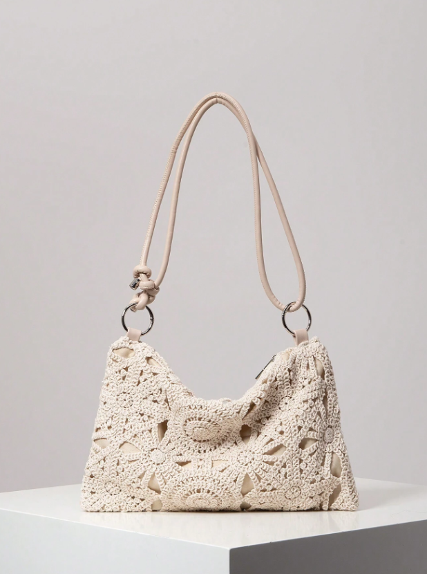 Floral Hollow Out Woven Bag