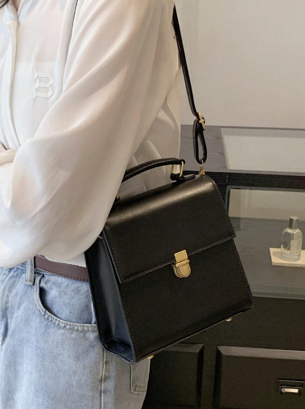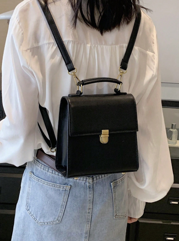 Mini flap backpack solid color, push lock, bookbag for outdoors, lightweight and portable. For date, movies, dinner.