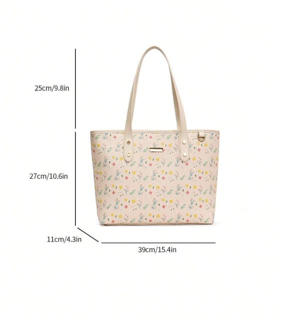 Large capacity tote with sweet spring florals. Great for every day professional or casual use while remaining fashionable. Metal ring accent for attaching keychains/hand sanitizers etc. Fits large books and small laptops for doubling up for work use.