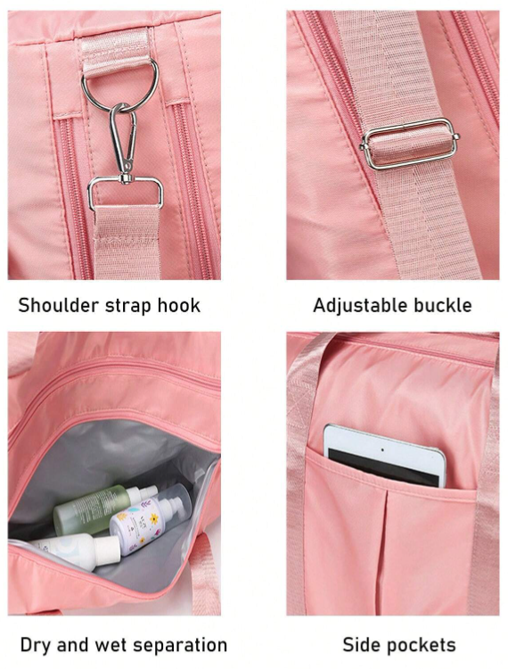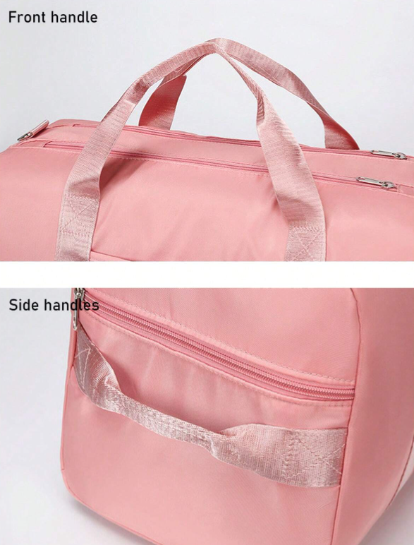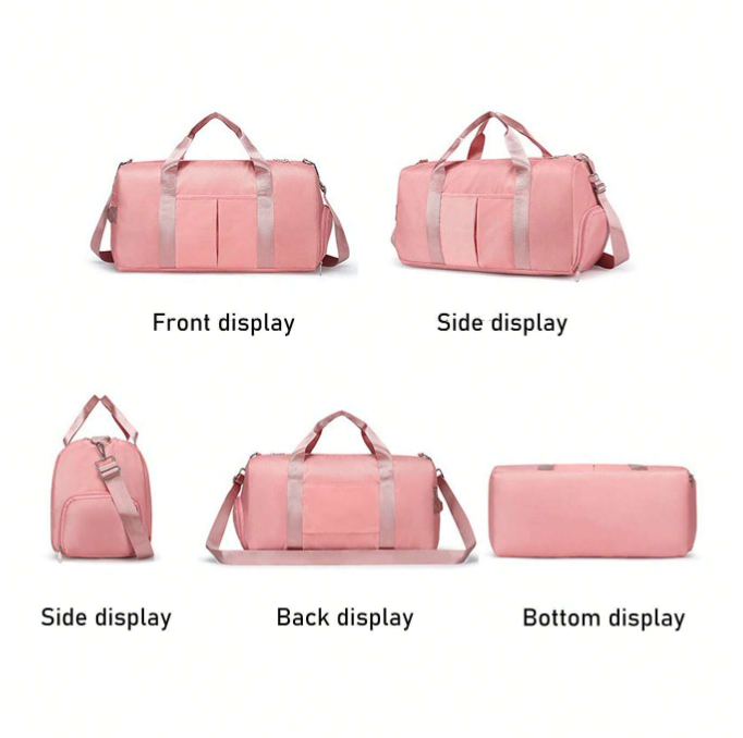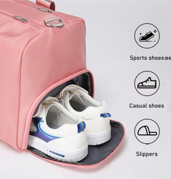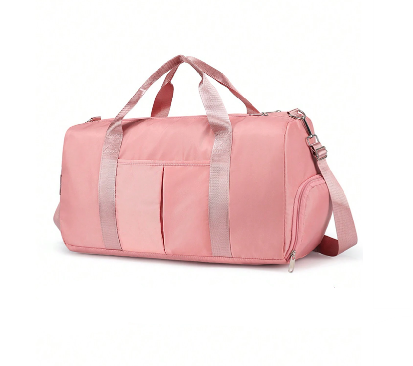 Minimal sleek design with large size, dry-wet separation and a shoe compartment. Shoulder strap or crossbody handle for carry with additional side handles for hauling out of lockers or vehicles or upright carry.